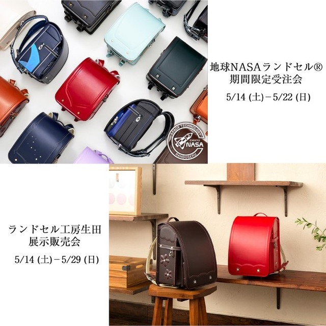 会期:地球NASAランドセル 5月14日~5月22日 / ランドセル工房生田 5月14日~5月29日