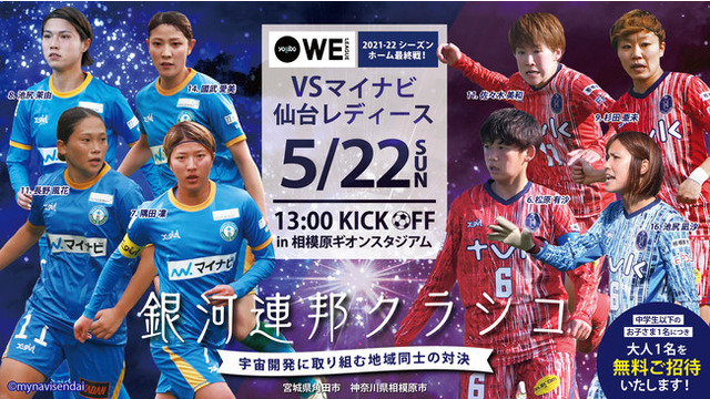 この試合は、宇宙開発に取り組む地域同士の対戦「銀河連邦クラシコ」と銘打って開催。宇宙をイメージしたロケット発射イベントをはじめ、ご家族で楽しんで頂けるイベントを準備しております!そして、中学生以下のお子さま1名につき、大人1名を無料でご招待!2021-22 Yogibo WEリーグ最終戦の熱い戦いをお見逃しなく!!!