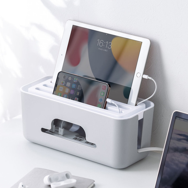 本製品は、電源タップやケーブルを入れられる収納ボックスです。