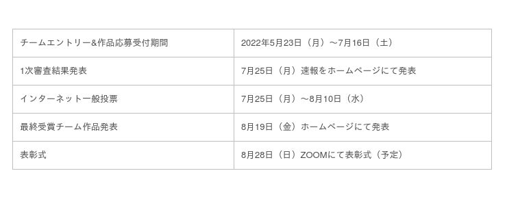 ※受賞チームの作品につきましては、実物を8月25日頃までにご提出いただきます