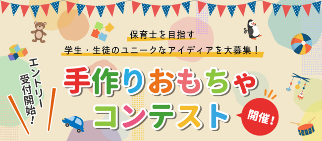 「京進のほいくえん」「京進のようちえん」「京進のこどもえん」を運営する京進グループは、全国の保育養成校(大学・短大・保育士養成校・専修学校)に在籍する学生を対象にした、「手作りおもちゃコンテスト2022」を5月~8月にかけて開催いたします。コンテストへの参加には、1チーム2~4名でのエントリーが必要で、5月23日(月)よりホームページで受付を開始、1次審査やインターネットによる一般投票などを経て、8月19日(金)受賞チームを発表します。