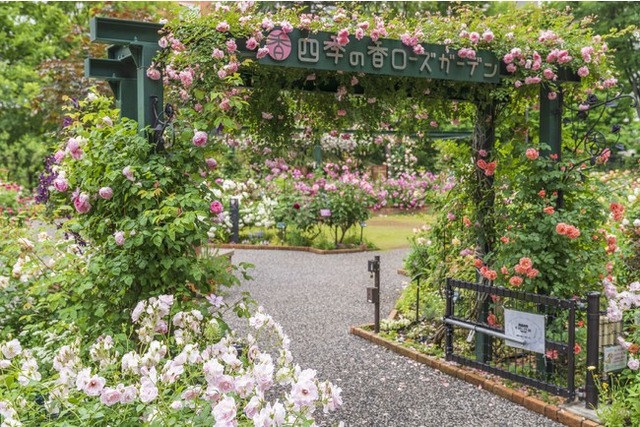 春バラの最盛期を迎える『練馬区立 四季の香ローズガーデン』では、フルーティーな香りやスパイシーな香りなど6種類の香りの違いごとに作庭した国内でも珍しい「香りのローズガーデン」と、バラを花色ごとに配置した「色彩のローズガーデン」で見ごろになったバラをお楽しみいただけます。
