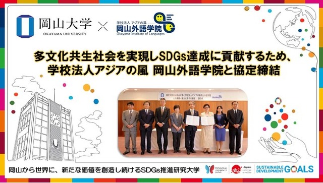 本学は本協定の締結により、岡山外語学院との連携を深め、多文化共生社会の実現とそれに伴うSDGsの達成および地域の活性化に貢献することを目指していきます。