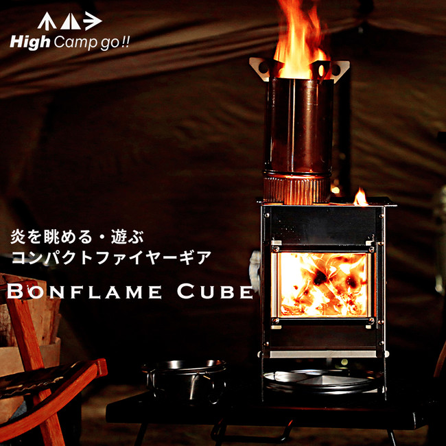 純国産にこだわるソロキャンプブランドHigh Camp Go!!は、炎が眺められるガラス窓を搭載したBOX型ロケットストーブ「Bonflame CUBE」の先行予約販売を公式オンラインストアにて2022年5月20日から開始。先行予約では数量限定で特別価格にて販売中。2022年5月23日時点で最大18%OFFでご購入いただけます。