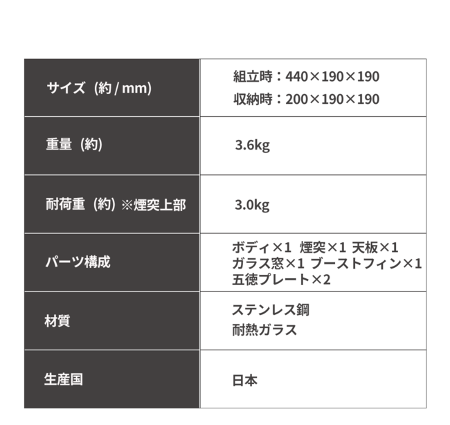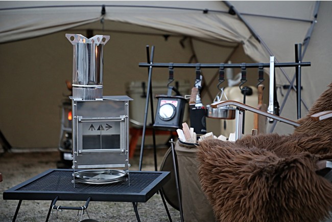 ドラフト効果(煙突効果)を利用して、少量の燃料で強い火力を生み出すことができるのが特徴です。