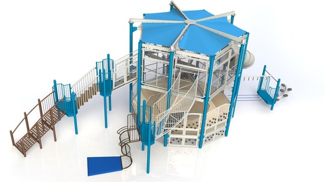 1階に巨大な2重のスラローム。2階にロープをかいくぐりながら進む広いネット空間を持つKepler Towerは、「不安定な場所を歩く」ことにより体幹を鍛え、遊びながら身体の軸を作り上げることができる総合遊具。