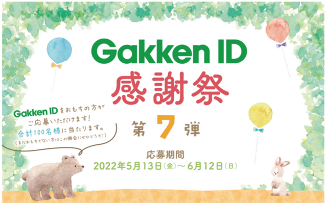 株式会社 学研ホールディングス(東京・品川/代表取締役社長:宮原博昭)は、ウェブサイト【Gakken家庭学習応援プロジェクト「マナビスタ」】にて、「GakkenID感謝祭 第7弾」を 2022年5月13日(金)より開催しています。