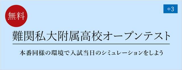 志望校合格には、入試問題の傾向や、具体的にどう対策すべきかを知ることが必要です。今回のオープンテストでは、「難関私大附属高校攻略セミナー」を同時開催します。