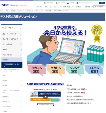 【URL(NECのWebサイト)】 https://jpn.nec.com/printer/laser/solution/workstyle/saiten/index.html