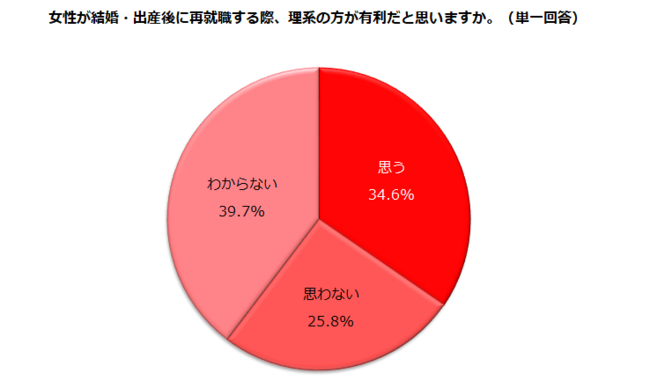 <女性が結婚・出産後に再就職する際、理系の方が有利だと思いますかとの質問に「わからない」と答えた人>