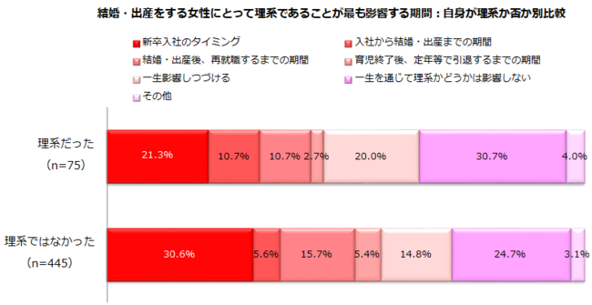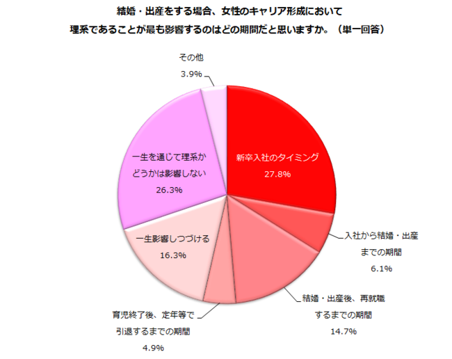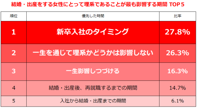 4.結婚・出産する女性に理系であることが影響する期間/1位:「新卒入社」