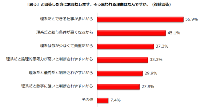 3.理系の方が有利だと思う理由「理系だとできる仕事が多いから」56.9%