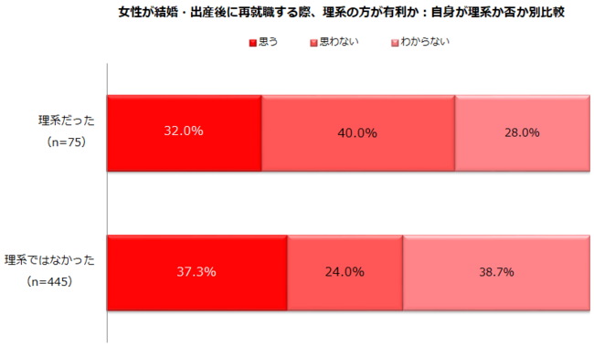 <女性が結婚・出産後に再就職する際、理系の方が有利だと思いますかとの質問に「思わない」と答えた人>