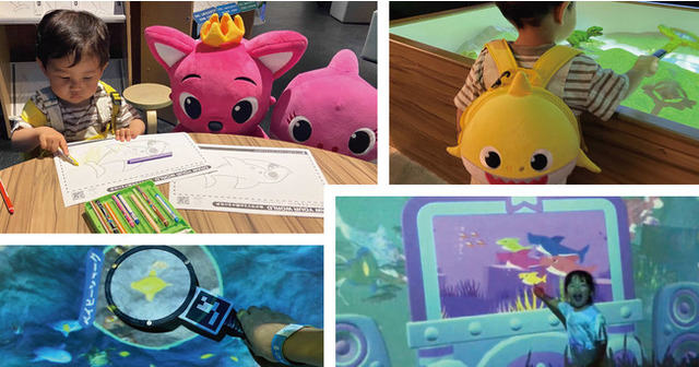イベント期間中は、ぬりえが3Dになって動き出すお絵かきアトラクション「DRAW YOUR WORLD」や、プロジェクションマッピングを使った砂遊びアトラクション「SAND PARTY!」の世界に「サメのかぞく」が登場する特別コラボバージョンがお楽しみいただけます。また、YouTube100億回再生のダンス動画「ベイビーシャーク・ダンス」のアニメーションが約30分ごとにスクリーンに登場し、アトラクションをさらに盛り上げます。