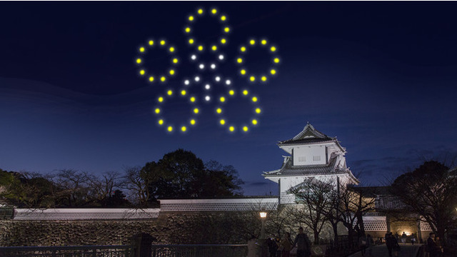 64機のドローンを活用し、「和」の音楽に沿って、梅針紋や金箔など金沢らしい光のアニメーションを夜空に映
