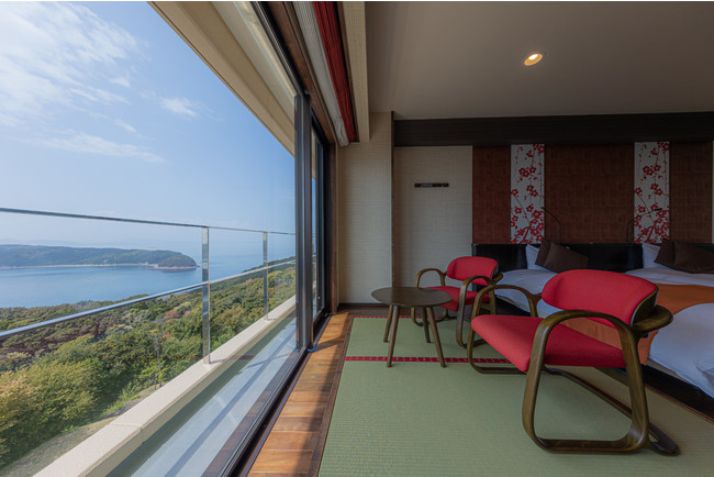 紀淡海峡に浮かぶ島々を一望する絶景のホテルです。客室は全室オーシャンビュー、特に夕景の美しさは別格です。また、春の桜鯛、夏のハモ、秋の伊勢海老、冬のクエ等、四季を通して海の幸も楽しめます。大浴場にある自慢の露天風呂は、紀淡海峡と湯面が一体化する趣向で人気があります。敷地内の深山砲台跡をはじめ、アニメファンに話題の友ヶ島もすぐそこにあり、周辺フィールドも見所沢山です。