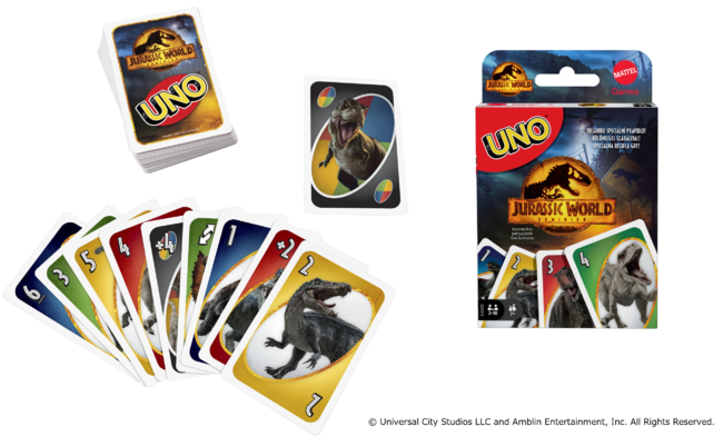 世界大手の玩具メーカー、米国マテル社の日本法人マテル・インターナショナル株式会社(本社:東京都千代田区、代表取締役社長:マーク・パンサール)は、2022年7月29日に公開される映画『ジュラシック・ワールド/新たなる支配者』に登場する恐竜たちがデザインされた「ウノ ジュラシック・ワールド/新たなる支配者」を 5月28日より順次発売いたします。