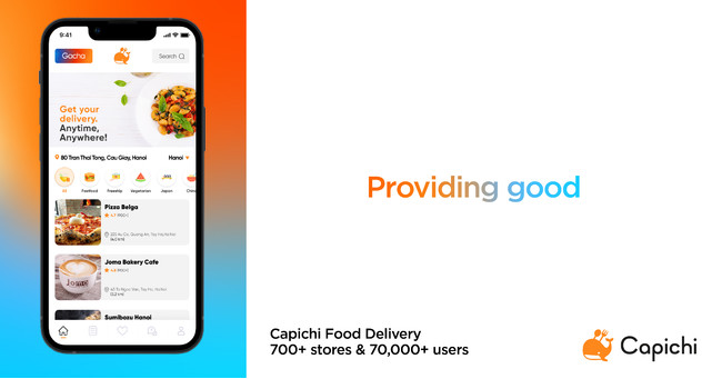 Capichiはベトナムのハノイとホーチミン、ダナン、ビンズンにおいてフードデリバリーサービス”Capichi”を開発・運営しています。2020年3月、Capichiはベトナムのコロナ禍による厳しい外出規制・飲食店営業規制の影響でフードデリバリーサービスを開発しリリースしました。初期はハノイの日系の飲食店舗と日本人ユーザーを中心に展開していましたが、2021年1月からホーチミン市への展開と提携店舗数の拡大に合わせて、ベトナム在住の欧米人、韓国人、中間富裕層のベトナム人のユーザーも急増し、多国籍のユーザーに利用されるようになりました。2021年4月現在では、会員ユーザー数は7万人、提携店舗数は700店舗を超えています。特に中高級・外資系店舗の店舗数はベトナムにあるフードデリバリーサービスの中で最大規模となっています。