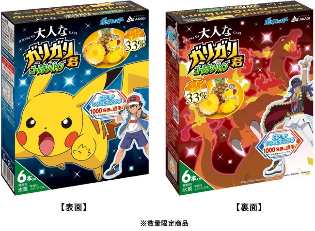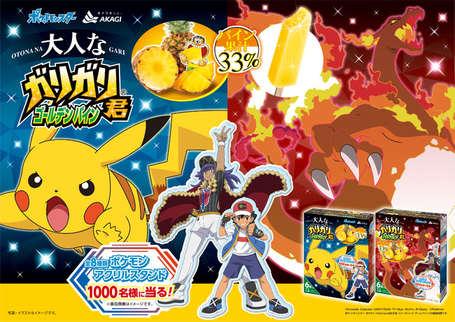 今回のパッケージには、アニメ「ポケットモンスター」とのタイアップ企画として「サトシ&ピカチュウ」・「ダンデ&リザードン(キョダイマックスのすがた)」が表面・裏面で登場いたします。大注目のポケモンワールドチャンピオンシップスに登場するトレーナーとポケモンの「ポケモンアクリルスタンド(8種、各125名様)」が抽選で合計1,000名様に当るキャンペーンを実施いたします。