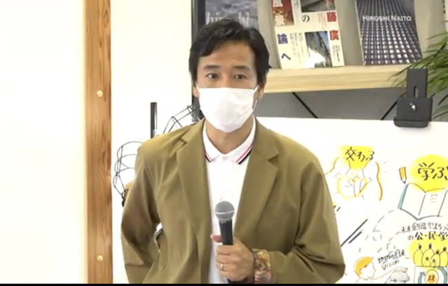 アートのお披露目は、27日に開催された「浜通り地域デザインセンターなみえ」のオープニングセレモニーの一環として、吉田浪江町長、協賛企業の日産自動車株式会社の土井常務執行役員、ヒアリングに参加した住民のみなさんなどが参加して行われ、住民が残したい浪江町の記憶と創りたい浪江町の未来が鮮やかな色合いで表現されたアートが除幕により公開されました。