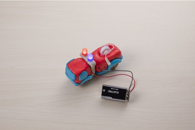 ひかる車の粘土で作って、電気と光のしくみを学びます。