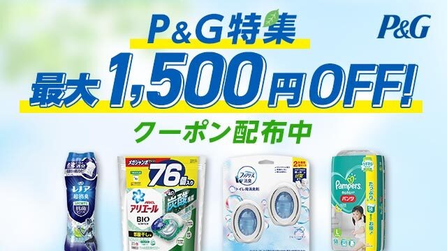 本キャンペーンでは、6/1 10:00~6/14 9:59の期間限定で、P&G商品で使える最大1,500円OFFクーポンを配布中。