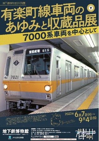 東京地下鉄株式会社(本社:東京都台東区 社長:山村 明義)では、公益財団法人メトロ文化財団(会長:安富 正文)が運営する地下鉄博物館において、2022年6月7日(火)~9月4日(日)にかけて開催する特別展「有楽町線車両のあゆみと収蔵品展~7000系車両を中心として~」に協力いたします。
