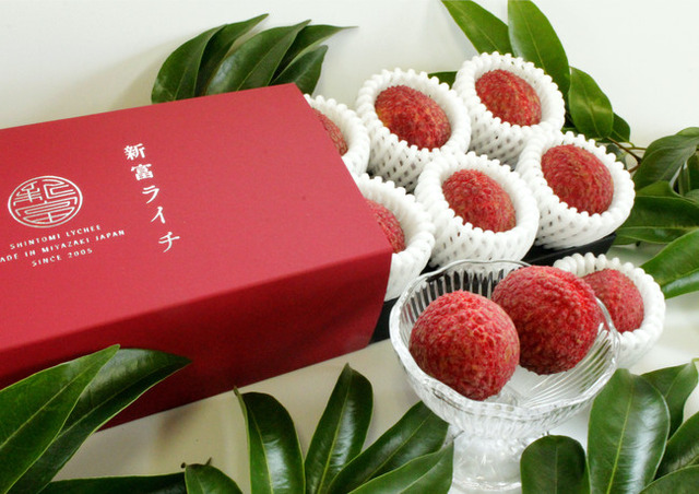 ・新富ライチ レギュラー:1玉40~50g、糖度15度以上(赤箱入り)