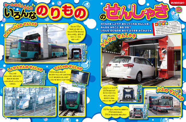 ★本誌でも、クルマやバス、電車などいろいろなのりものの洗車機を紹介! 超豪華プレゼントも盛りだくさん! 他にもシンカリオンZやきかんしゃトーマス、ホットウィール、パウ・パトロール、ちびっこれっしゃティティポ、レゴ(R)シティなど人気ものがせいぞろいだ!