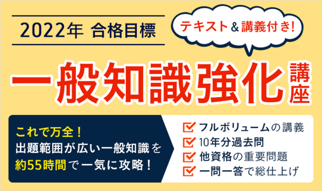 本講座のインプット部分では,一般知識分野の対策としてこれだけやっておけば万全というフルボリュームで講義を行います。
