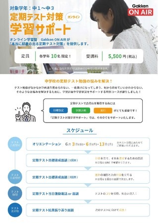 そこで、Gakken ON AIRでは新しい定期テスト対策として、お子様お一人お一人に合ったサポートを提供する「定期テスト対策オンライン学習サポート」をスタートしました。