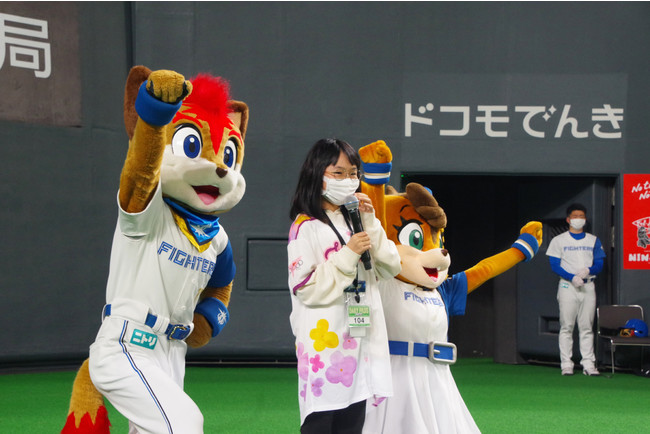 5月3日(火/祝)に札幌ドームで行われた北海道日本ハムファイターズ VS 東北楽天ゴールデンイーグルス戦では、エッセンシャルワーカーの方で小学生のお子さんを持つご家族15組30名様を試合前のイベントにご招待し、初回の守備位置に着く選手をベンチ前で見送る「スタメンキッズ」や、グラウンド上からプレイボールのコールを行う「プレイボールキッズ」など、選手を間近で感じられる非日常体験をお楽しみいただきました。