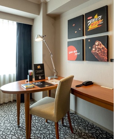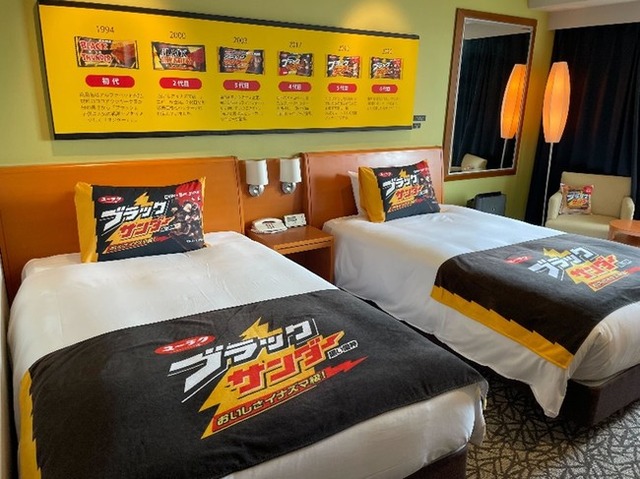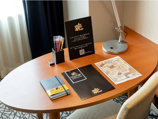 また有楽製菓が運営するブラックサンダー好きが集い、共にブラックサンダーの魅力を発信しあうコミュニティ「黒い広報室」。その広報の室長より、宿泊者に向けた「黒い挑戦状」(オリジナルクイズ)をお部屋にご用意。満点はブラック(黒)にちなんで、96点。チャレンジした挑戦状をフロントに提出することで、解答用紙と参加記念のブラックサンダーステッカーをプレゼントいたします。