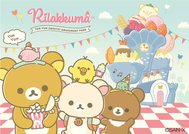 今回のリラックマの新テーマは、ちょっぴりレトロでポップな雰囲気がおしゃれなお菓子の遊園地テーマです。