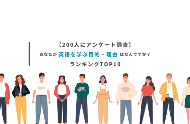 今回は、英語学習をされている(始めようと考えている)200名の方に『英語を学んでいる(学ぼうと思っている)目的・理由』のアンケート調査を行い、結果をランキング形式で紹介しました。