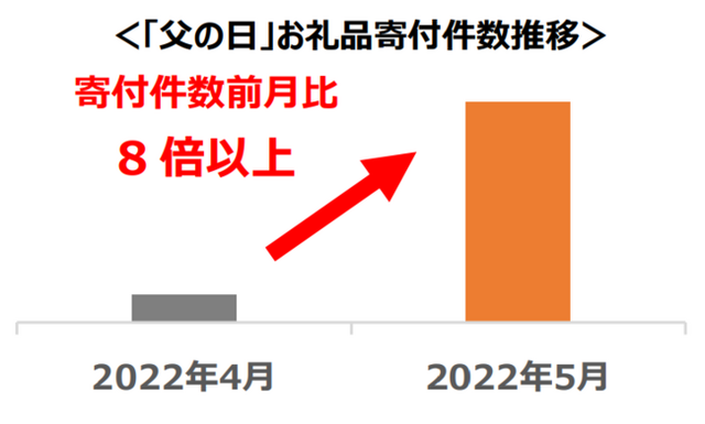 ■名称に「父の日」が含まれるお礼品寄付件数が前月比で8倍以上増加!