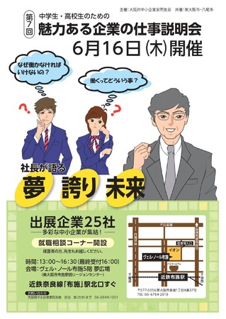 《大阪府中小企業家同友会》(事務局:大阪市中央区農人橋2-1-30 谷町八木ビル4F)は、《将来を考える中学生・高校生に仕事とは何か?働く事の大切さを伝える》「《仕事説明会》」を《2022年6月16日(木)》に開催致します。