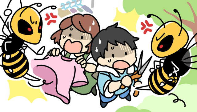 もしも刺されてしまった場合は、その場からなるべく静かに10m以上距離をとって安全を確保し、毒針を抜いて患部を水で洗い流したあと、病院を受診するようにしてください。