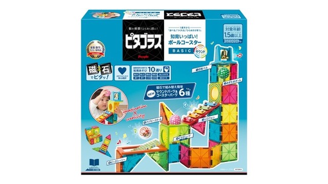 昨年の発売から大人気の「ピタゴラス(R)知育いっぱい!ボールコースター」に新しい仲間が加わります。磁石で組み替え簡単なコースターパーツ&サウンドパーツで「動き」も「音」も楽しめます。