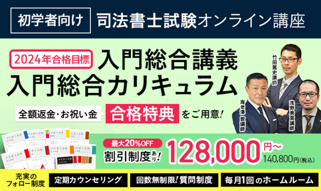 司法書士試験合格の鍵は,膨大な情報量をいかに効率よく処理し,記憶に定着させることができるかにあります。本カリキュラムでは,初めて司法書士試験の学習を始める方が,最短ルートで合格するための講座を揃えました。