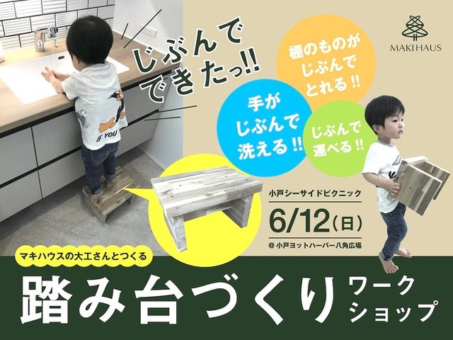 MAKIHAUS株式会社(本社:福岡市博多区、代表取締役社長:石井清悟)は、6/12(日)同グループのモンテッソーリ園(ハピネス保育園)の園長監修でつくった踏み台を、親子でつくるワークショップを開催。材料には、SDGsの観点からマキハウスの家の建築によってでた端材を有効利用し加工したものを使用。当日はマキハウスの家を建てる大工さんと一緒に親子で踏み台をつくっていただきます。場所は、毎月小戸シーサイドピクニックが開催されている、小戸公園ヨットハーバー八角公園。詳しくはマキハウスホームページをご確認ください。https://info.maki-web.co.jp/l/919643/2022-05-27/qgzvn