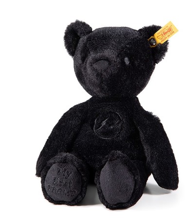 初めてのぬいぐるみとして出産祝いでも人気なカドリーフレンズシリーズ「マイファースト シュタイフ」を、fragment designを象徴するブラックカラーで統一。胸にはfragment designのサンダーマーク、足裏の刺繍も「My First FRGMT」となっています。