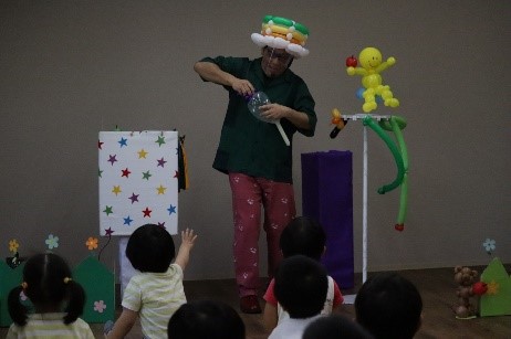 そこで、当社では保育所に通う家庭のみならず、地域の子育て家庭へも育児支援を積極的に行っています。今回は地域子育て支援事業として、当社「洋光台ナーサリー」に併設されている「スタチャラウンジ」にて、5月19日に地域の子育て家庭を招待してバルーンアートショーを開催いたしました。子ども達からは「あかいろのお花を作って」とリクエストがあったり、作品が出来あがると拍手をしたりと大盛況でした。今後も地域の子育て支援を進め、SDGsに取り組んでまいります。