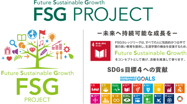 FSGカレッジリーグは、全ての人に包括的かつ公平で質の高い教育を提供し、生涯学習の機会を促進するため「Future Sustainable Growth」をコンセプトとして掲げ、活動を推進して参ります。