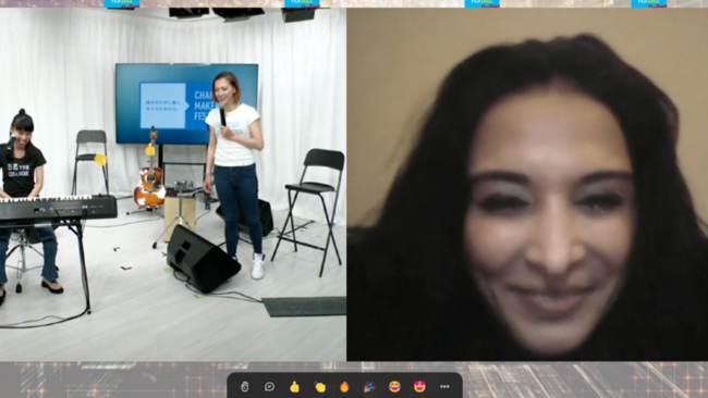 1曲目は土屋アンナさんの「Voyagers」、2曲目はわたなべちひろさんによるOfficial 髭男dismさんの「宿命」のカバー、3曲目は、昨年も大好評だった、お二人によるスペシャルコラボ企画として、中島みゆきさんの「糸」が披露されました。参加者も拍手やハートのスタンプをたくさん送っており、今年も大盛況でした。