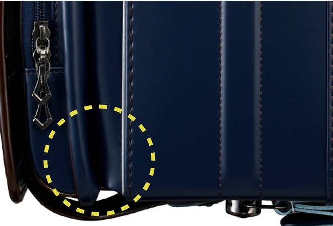 肩ベルトの付け根が上向きになるふわりぃ背カンを採用。背負った際にランドセルが斜め後ろに引っ張られて背中から離れてしまう事を抑制、体感重量が軽くなります。