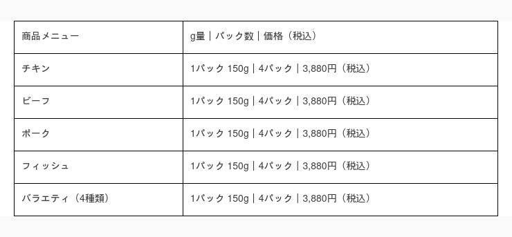 楽天市場・Amazonモールでは、それぞれ下記のラインナップで販売を開始しております。お試ししやすい4パックサイズから用意しており、愛犬仲間へのプレゼントとしても贈りやすい量となっております。