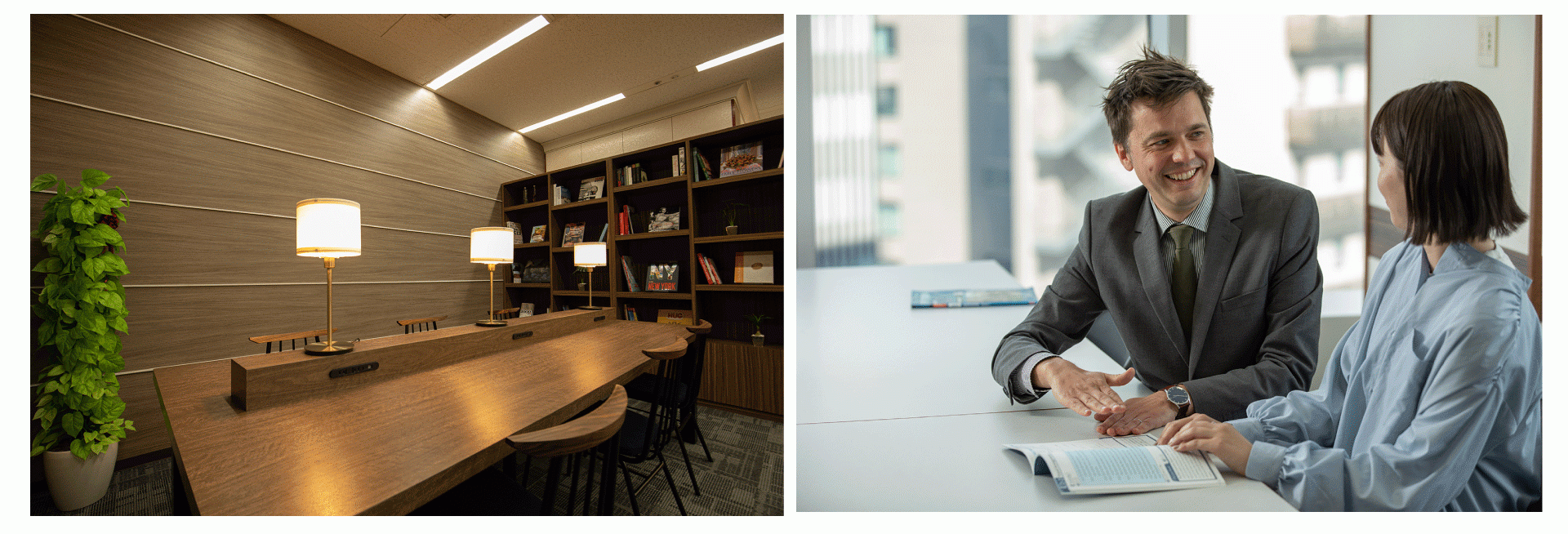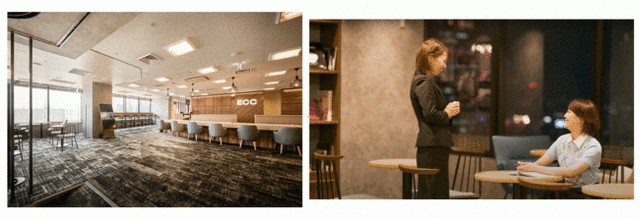 4月13日(水)にリニューアルオープンした「阪急グランドビル梅田校」および「ミッドランドスクエア名駅校」では、レッスンの準備や仕事など多目的に利用できる共有スペースを新設。レッスンがない日にも気軽に立ち寄って講師やスタッフ、クラスメートとの会話を楽しんだり自習をしたりと、快適に過ごせるスクールに生まれ変わりました。