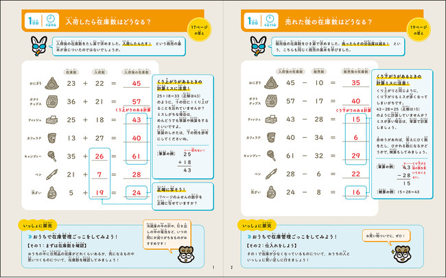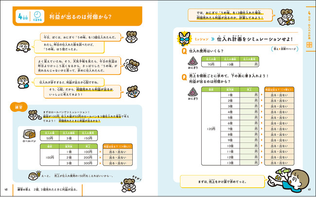 『ビジネス×計算』では、不運続きのコンビニ店長のお手伝いを通して、利益などの計算方法やグラフを用いた分析方法などを学び、経営的な視点にも触れていくストーリーになっています。