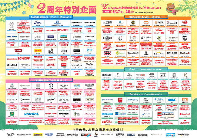 約100店舗でお得!ショップ&レストラン2周年特別企画!